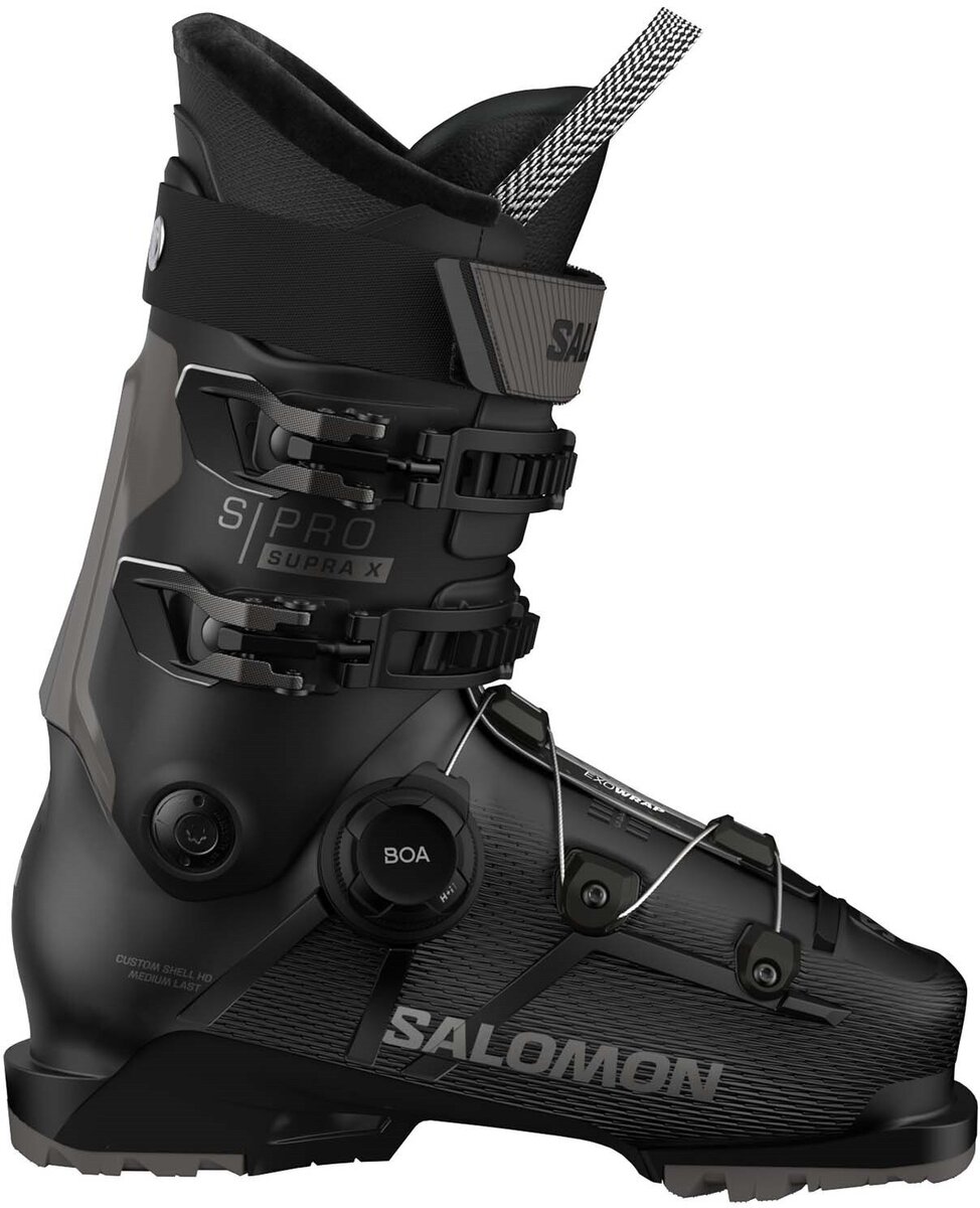 The Salomon S/Pro Supra BOA X100 Ski Boots offer all the benefits of BOA in a more palatable flex for intermediate to advanced skiers. The BOA® Fit System wraps around the instep better than buckles ever could, removing pressure from the top of your foot and improving power transfer between you and your skis. The user-friendly dial makes on-the-fly adjustments easy, and it all comes with classic Salomon quality and attention to detail. Don't let this boot pass you by!